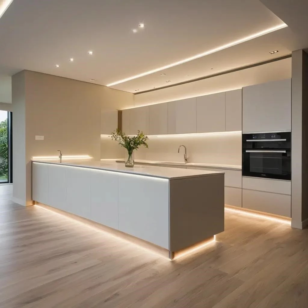 Для каждой задачи выбор ленты обоснован. Для подсветки потолка, где нужно равномерное LED освещение, выбирают ленты с умеренной яркостью ленты и нейтральной цветовой температурой, обеспечивающие мягкое свечение. Плотность SMD светодиодов важна для отсутствия точечных эффектов. При акцентном освещении или декоративной подсветке ниш и мебели акцент на управление светом: контроллер RGB или диммер. Для подсветки кухонного гарнитура и рабочей зоны критичны высокая яркость ленты, холодная цветовая температура и обязательная влагозащита IP. Часто применяют 24В ленты. Гибкая лента с самоклеящейся лентой упрощает монтаж ленты. Параметры ленты зависят от её назначения.