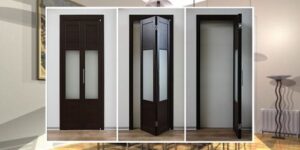 Среди межкомнатных дверей всё большую популярность приобретают модели «книжка», которые собираются, наподобие книги, – пополам. Их целесообразно ставить в узких помещениях, где нет простора для открытия створок. Такую конструкцию отличает высокая