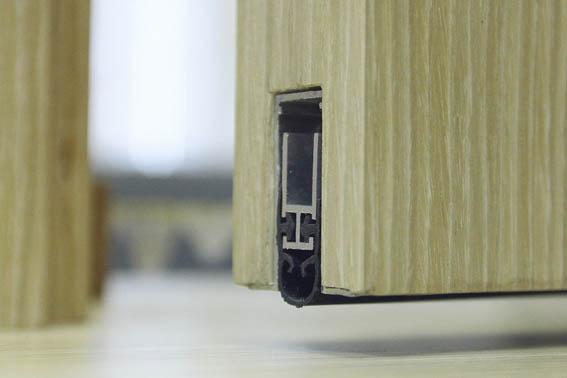Выдвижной порог — алюминиевый профиль, который укомплектован надёжными резиновыми уплотнителями с вмонтированными пружинными механизмами. Специальная кнопка, приводящая их в движение, находится на торце дверного полотна. Пружина беззвучно выдвигает уплотнитель, закрывающий щель под дверью. Резина отличается высокой прочностью, не деформируется и не подвергается истиранию.