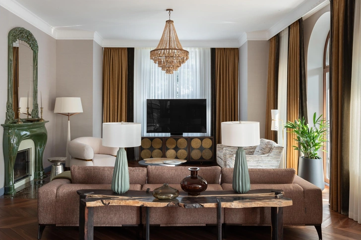 Мы использовали много оригинальных декоративных решений. Например, в доме был камин, который мы, конечно, оставили, но добавили новый портал в стиле модерн, который изготовили местные мастера по керамике. По стенкам камина поднимается цветочный рельеф, который переходит в обрамление зеркала сверху. Композицию венчает гнездо с пятью птицами, символизирующее крепкую семью».