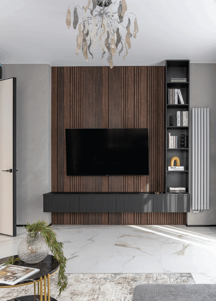 «В ТВ-ЗОНЕ ИСПОЛЬЗОВАЛИСЬ ПАНЕЛИ С ФАКТУРОЙ ДЕРЕВА, ЧТО СОЗДАЛО ДИНАМИКУ И ВИЗУАЛЬНО ВЫТЯНУЛО ПРОСТРАНСТВО»