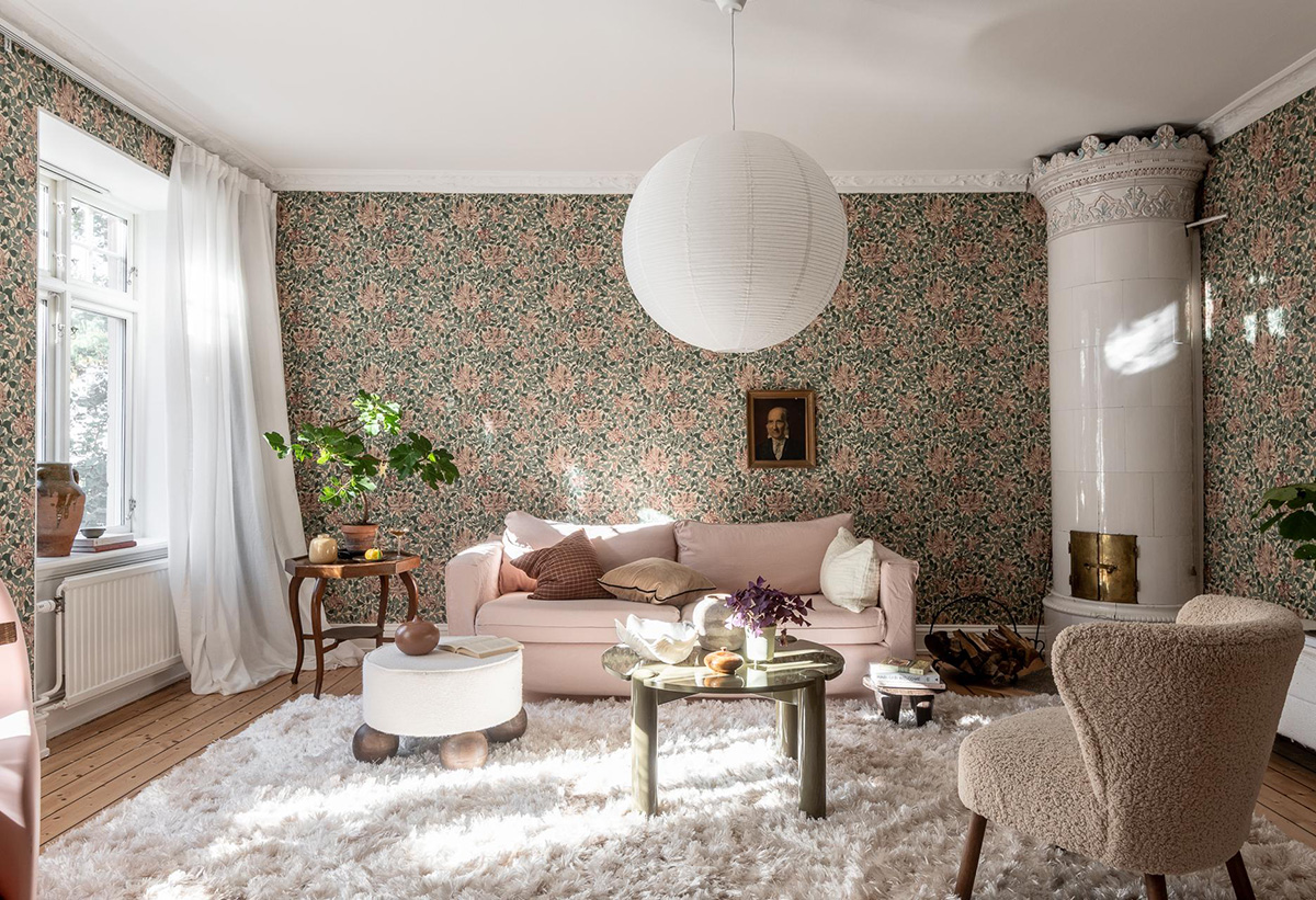 В этой шведской квартире живёт большой почитатель цветочных обоев — согласитесь, не каждый осмелиться украсить стены своей гостиной и спальни настолько активным узором. Зато вместе с этим решением хозяйка получился душевную атмосферу бабушкиного дачного коттеджа у себя в квартире. На кухне и в детской оформление уже поспокойней — вместо обоев однотонные стены, но кантри-настроение всё равно сохраняется по всей квартире. А вы бы смогли жить в такой пространстве?