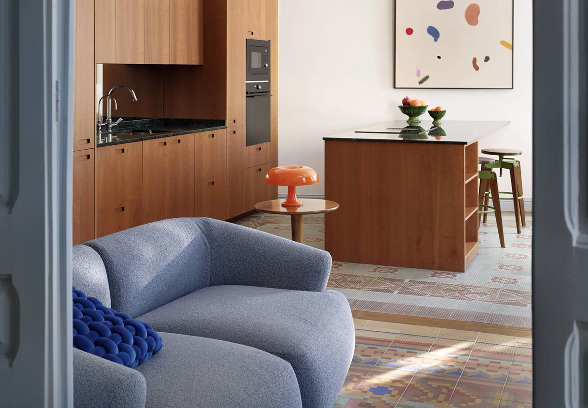 Изящная лепнина и яркий современный дизайн: квартира в Барселоне