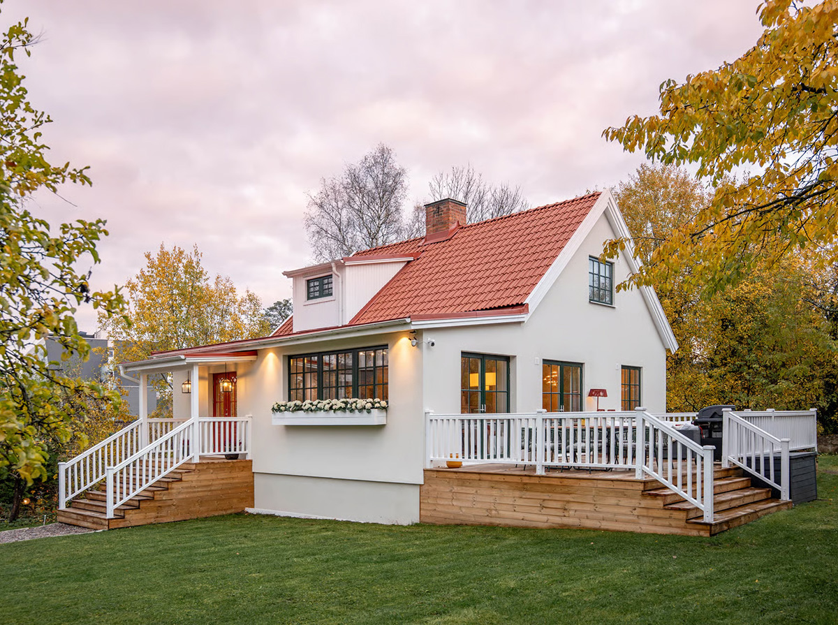 Этот замечательный коттедж 1930-х годов на северной окраине Стокгольма недавно пережил большую реконструкцию и теперь выглядит, словно с иголочки. Оригинальным остался лишь традиционный экстерьер с верандой, который тем не менее всё равно был обновлён и перекрашен. Во внутреннем пространства дома также всё новое, но классические окна и дровяной камин в гостиной придают интерьерам прекрасные нотки вне времени. Enjoy!