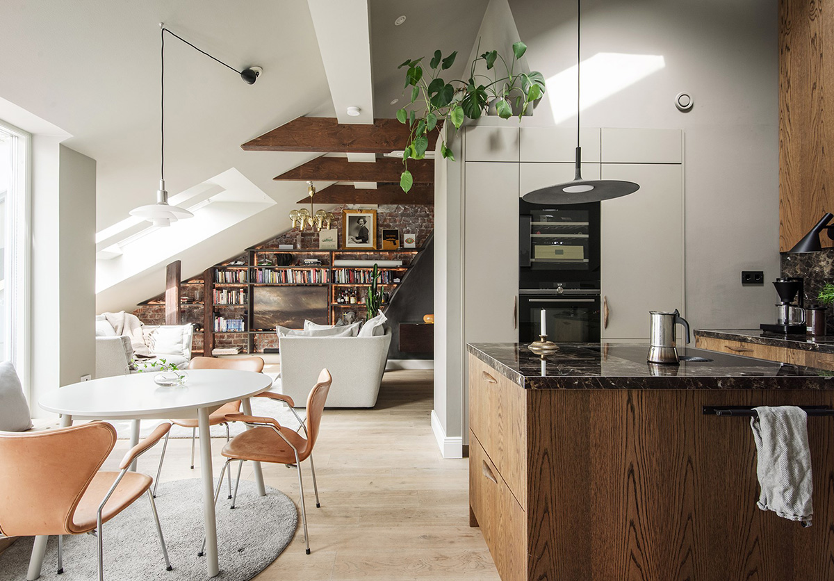Кирпич, мансардные окна и терраса: квартира на последнем этаже в Стокгольме