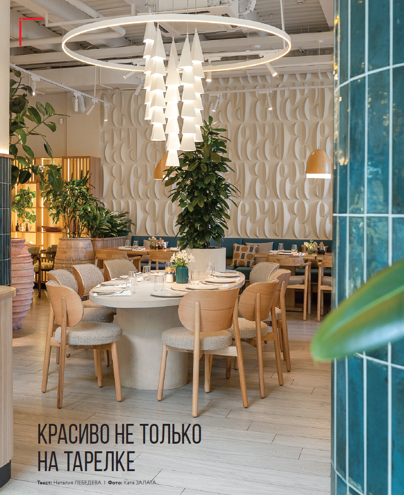 «Мы сознательно избегали эффекта оранжереи — нам важно было, чтобы зелень выглядела естественно, как часть архитектуры. Каждое растение подобрано так, чтобы подчеркивать линии мебели и правильно направлять взгляд гостя, но при этом оста- ваться простым в уходе», — делятся авторы интерьера, студии DBA-GROUP.