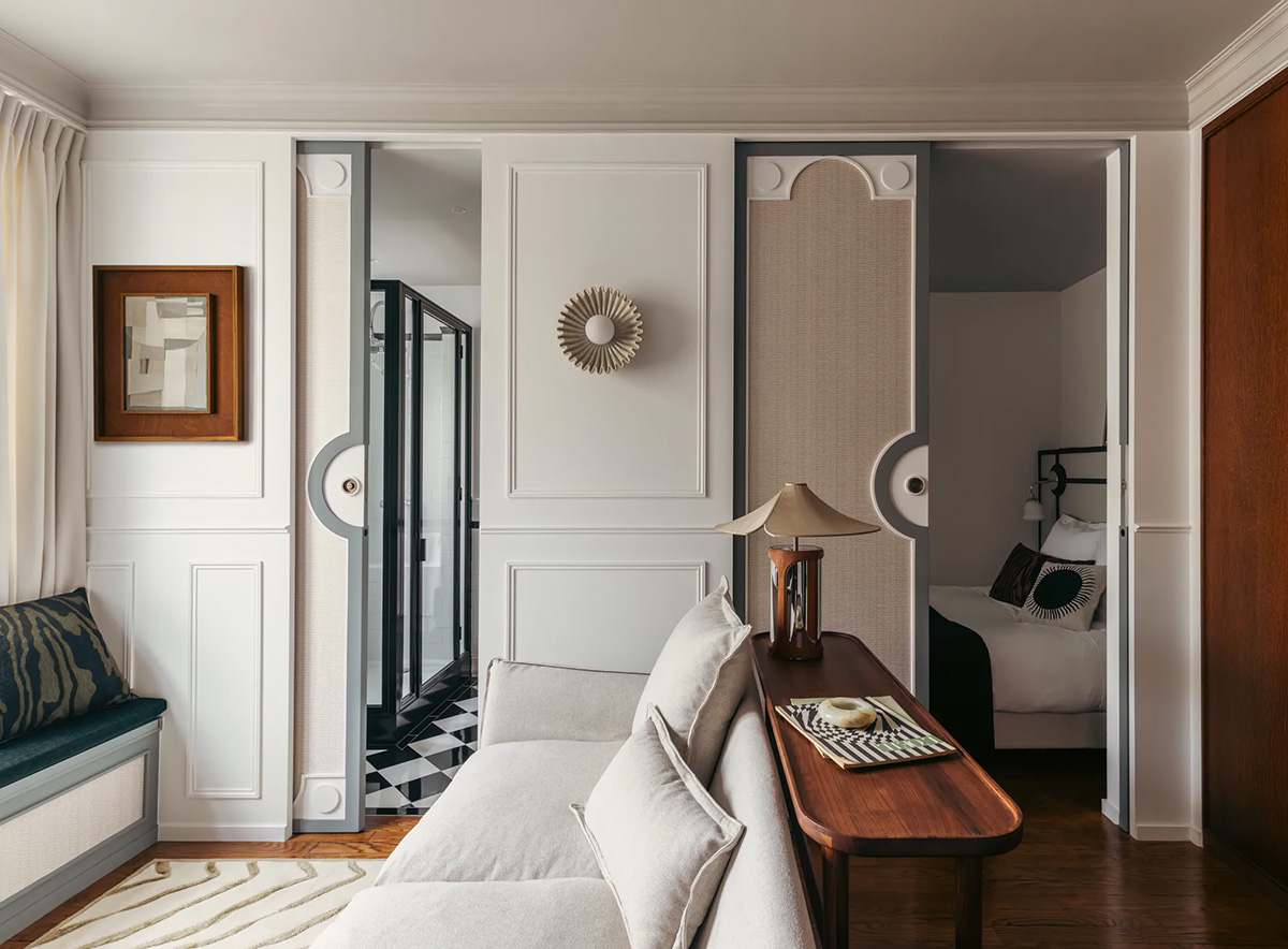 Парижский интерьер должен быть элегантным и с творческой ноткой, и не важно, это просторные апартаменты или небольшая квартира. Сегодняшний наш интерьер относиться ко второй группе — по функции это двухкомнатная квартира, но её площадь всего 30 кв. м. Как мы знаем, французские дизайнеры могут пожертвовать чем угодно, только не элегантностью, поэтому стены жилья обильно украшенные молдингами, картинами в рамках, а в декоре преобладают утончённые детали с классическими нотками. Отдельно стоит отметить крошечную спальню с раздвижными дверьми, спрятанными под шкаф. Enjoy!