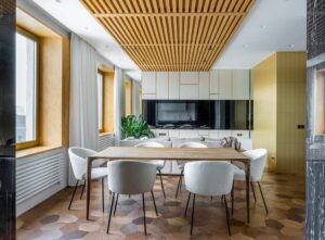 Проектирование: дизайн-студия Марины Неллиной, г. Москва Автор проекта: архитектор-дизайнер Марина Неллина Заказчики в основном живут за городом, поэтому для них был принципиальным вопрос простора, чтобы стены квартиры не давили и не сковывали. Автору предстояло создать светлый интерьер, не обремененный лишними деталями, минималистичный, но в то же время функциональный. Коридор, гостиная-столовая и кухня представляют собой единое …