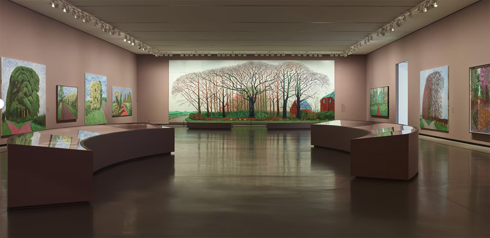 В 2000‑х Хокни возвращается в Англию и пишет серию огромных пейзажей родного Йоркшира. Особенно значима работа «Bigger Trees near Warter» — 15 метров длиной, написанная на 50 холстах. Это монументальная, почти панорамная композиция, сопоставимая с полотнами Моне или Брейгеля.