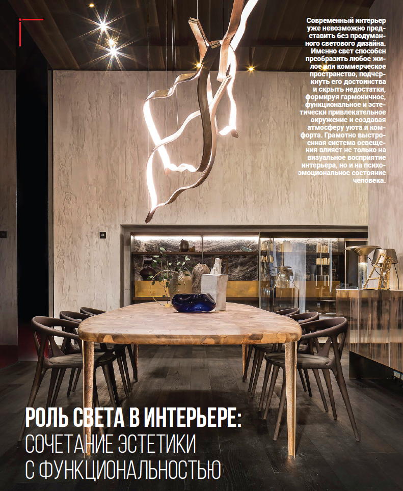 Таким образом, интерьерное освещение сегодня — это баланс функциональности, эстетики и высоких технологий, призванный создавать комфортную и вдохновляю- щую атмосферу в доме.