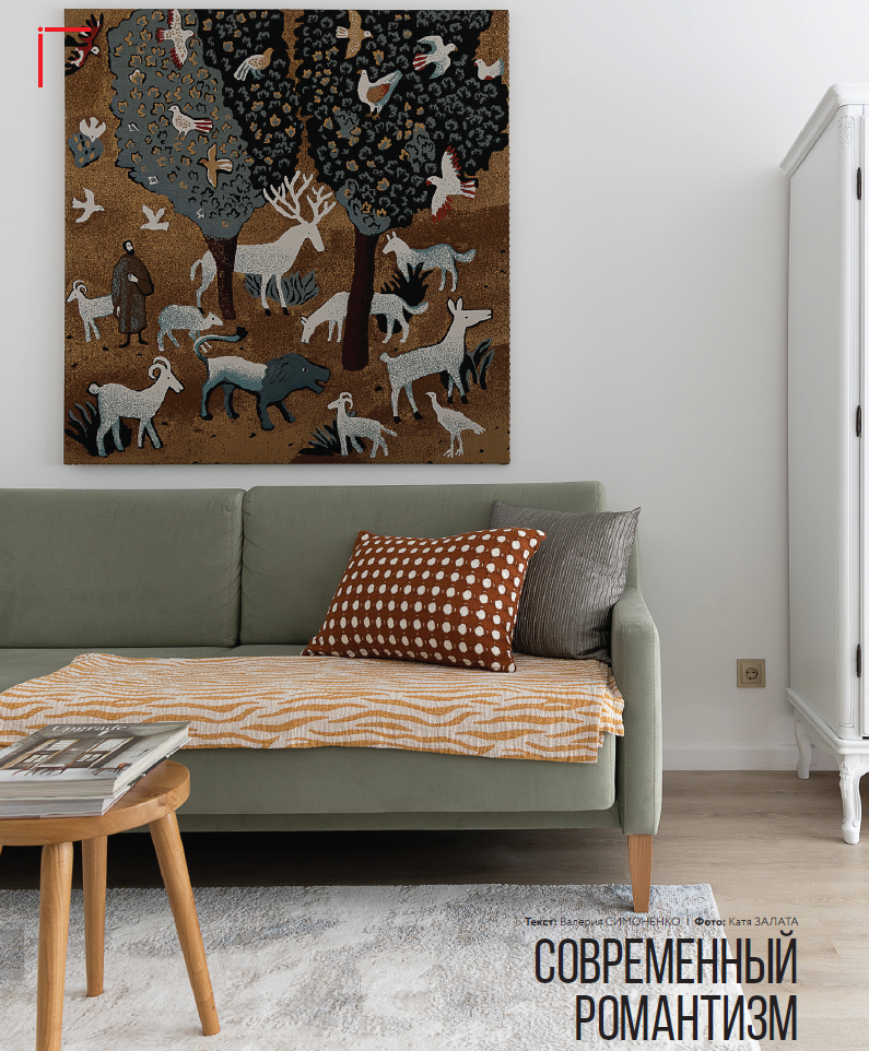 «Раритетный румынский мебельный гар- нитур 70-х достался хозяйке квартиры от родителей, — рассказывает дизайнер. — Кровать, шкаф, трюмо с зеркалом, тумба, пуф, прикроватные тумбочки…