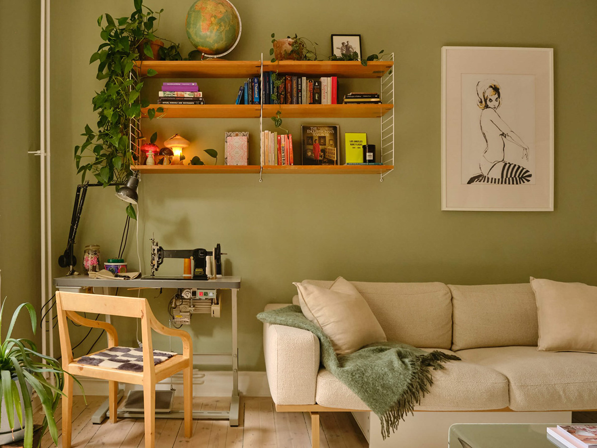 Балкон этой небольшой квартиры в Стокгольме выходит на зелёный внутренний двор с деревьями, которые растут очень близко к дому. Словно желая продолжить эту тему в интерьерах, дизайнеры решили наполнить внутреннее пространство свежестью живых растений, а также приятным зеленым оттенком стен. В сочетании с натуральными деревянными элементами, бежевым текстилем и настоящей дровяной печью атмосфера в интерьере очень приятная. Спальня также поддержала эту концепцию, но уже в более спокойном и светлом цвете стен. Уютное небольшое жильё!
