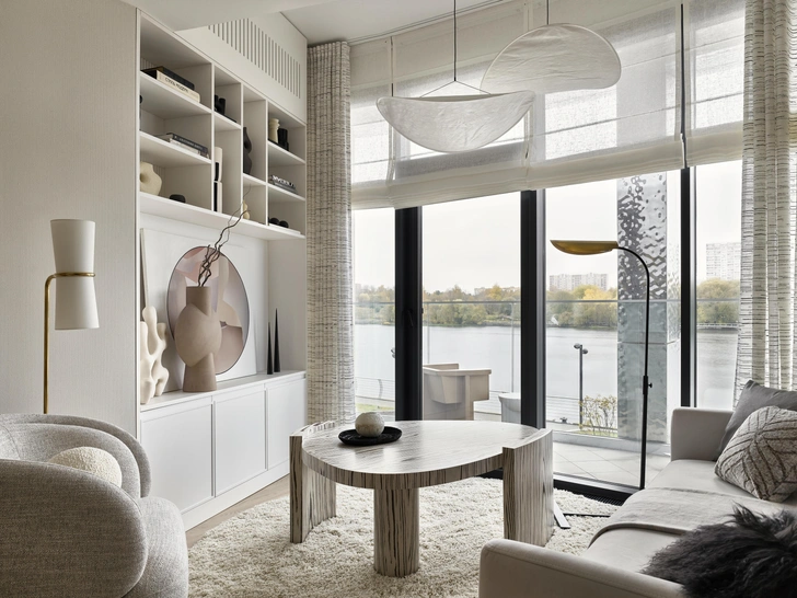Главным источником вдохновения для дизайнеров Ольги Орловой и Анна Бредихиной стал вид из окон: река, утопающая в зелени парка, проплывающие мимо яхты и люди, гуляющие по набережной — все это создавало особую атмосферу спокойствия, которую команда постаралась передать в интерьере.