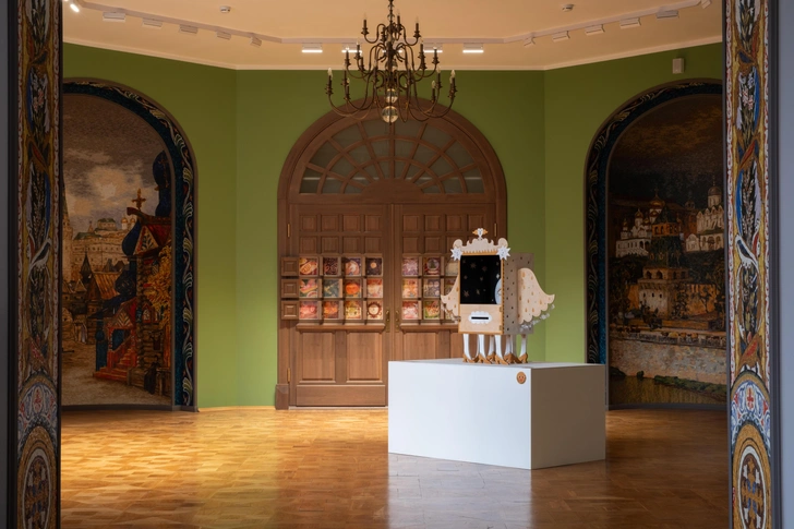 Специально для выставки в «васнецовском» зале второго этажа Ульяна Подкорытова сделала интерактивный домашний театр, а Анастасия Рыбакова представила свою новогоднюю «Радиальную азбуку» из двадцати четырех рисунков — от праздничного оливье с бенгальским огнем до детской юлы-планеты.