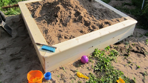 Разумеется важно выбрать песок, который будет мелким и просушенным. Доски для песочницы обрабатываются специальным антисептиком, чтобы не образовывалось грибков и плесени.