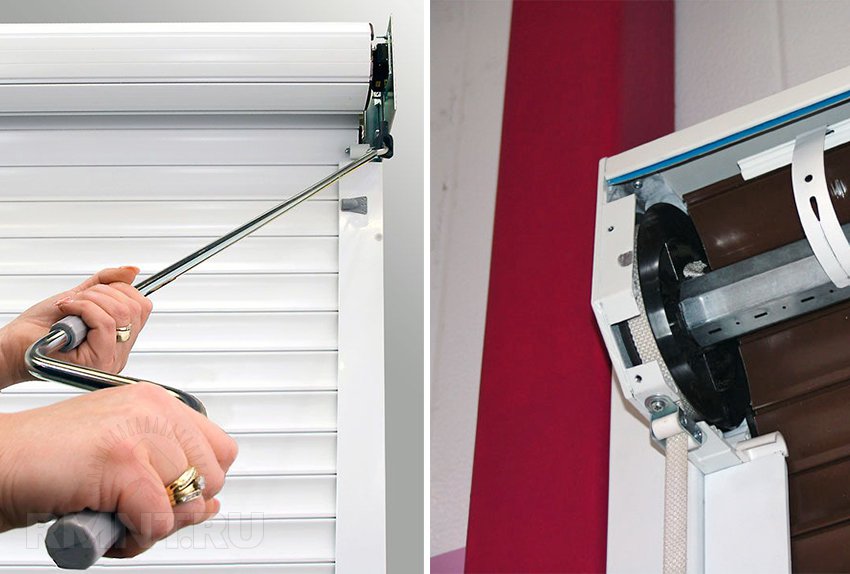Наиболее удобно ручное управление на основе пружинно-инерционного механизма, который устанавливается внутри вала в коробе.