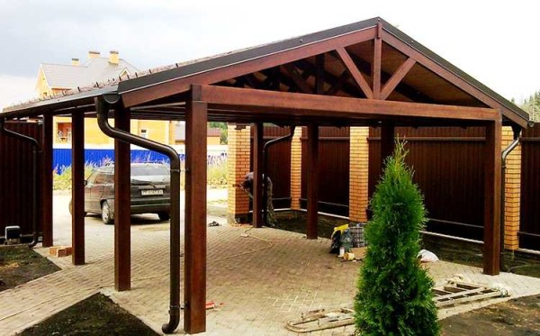 В случае с деревянным навесом под двускатной крышей система получается многокомпонентная.