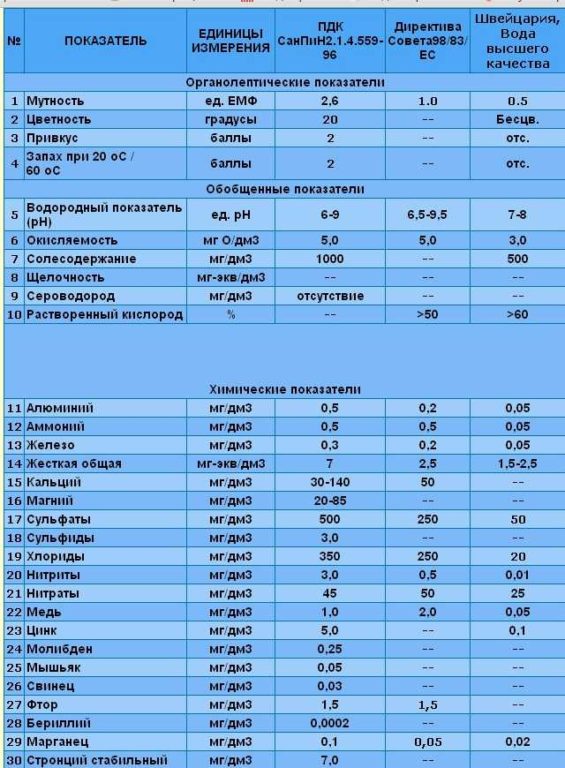 Самая распространенная проблема с поднятой из скважин водой — превышенное содержание железа. Если говорить о санитарных нормах, то допустимый уровень железа в воде — 0,3 мг/л. Если концентрация повышается, появляется специфический привкус. При содержании железа более чем 1 мг/л изменяется уже цвет — после непродолжительного отстаивания появляется характерный рыжеватый — ржавый — оттенок.
