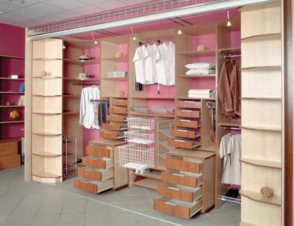 Особого разнообразия тут не получится, но вполне можно установить пару ящиков при необходимости. Тут очень кстати будут выдвижные устройства для компактного размещения. Брючница так точно понадобится.