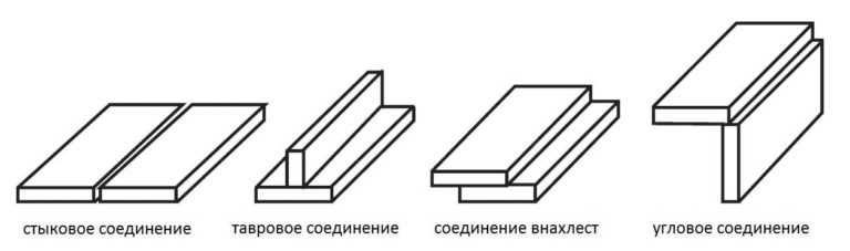Сварные швы в зависимости от вида соединения бывают стыковые (встык), тавровые, внахлест и угловые