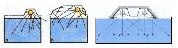 При определении интенсивности освещения аквариума необходимо учитывать его глубину. Все дело в том, что при прохождении 10 см воды средней прозрачности освещенность падает на 50%.