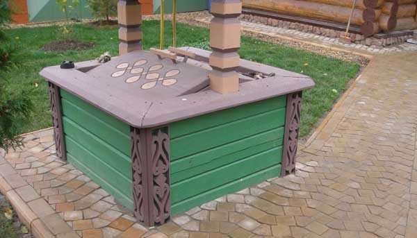 Речь идет о таком варианте укрытия для колодца — с дверкой. Если внутри еще сделать крышку, точно пыль попадать не будет.