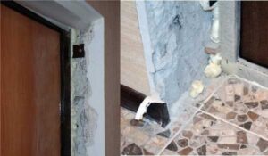 Для оформления дверных откосов существуют две технологии: оштукатуривание и оформление твердыми отделочными материалами типа ламинированного МДФ, пластика, гипсокартона и т.п. Выравнивание дверного откоса штукатуркой — самый надежный с точки зрения безопасности способ: не остается щелей и зазоров, выбить двери будет очень непросто. Потому штукатурят откосы обычно возле входных дверей. Но, как всегда, есть недостатки: времени эта работа занимает …