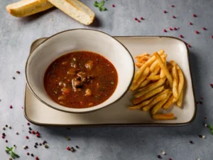 В промозглую погоду подбодрите себя и приготовьте ароматный суп гуляш от Анатолия Аношина, бренд-шефа ресторанов «Ян Примус» Суп гуляш5,0 Изначально суп был традиционной едой пастухов и готовился в котлах на костре, но сейчас готовится в кастрюле или глубокой сковороде. Время приготовления50 мин.Рецепт на4 персоныКухняВенгерскаяТип блюдаСупы и бульоныИнгредиенты говядина 350 г бульон говяжий 1 л картофель …
