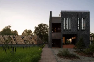 Архитекторы Татьяна Осецкая и Александр Салов создали пространство с необычной эстетикой Фото Даниил Анненков Новый гостевой дом по проекту архитектурного бюро Osetskaya. Salov находится в новой части Переславля-Залесского. Когда-то на этом участке стоял старый пятистенок, а теперь — два эффектных здания с черными фасадами, двухэтажный дом и баня. Цвет, с одной стороны, выделяет их на фоне …