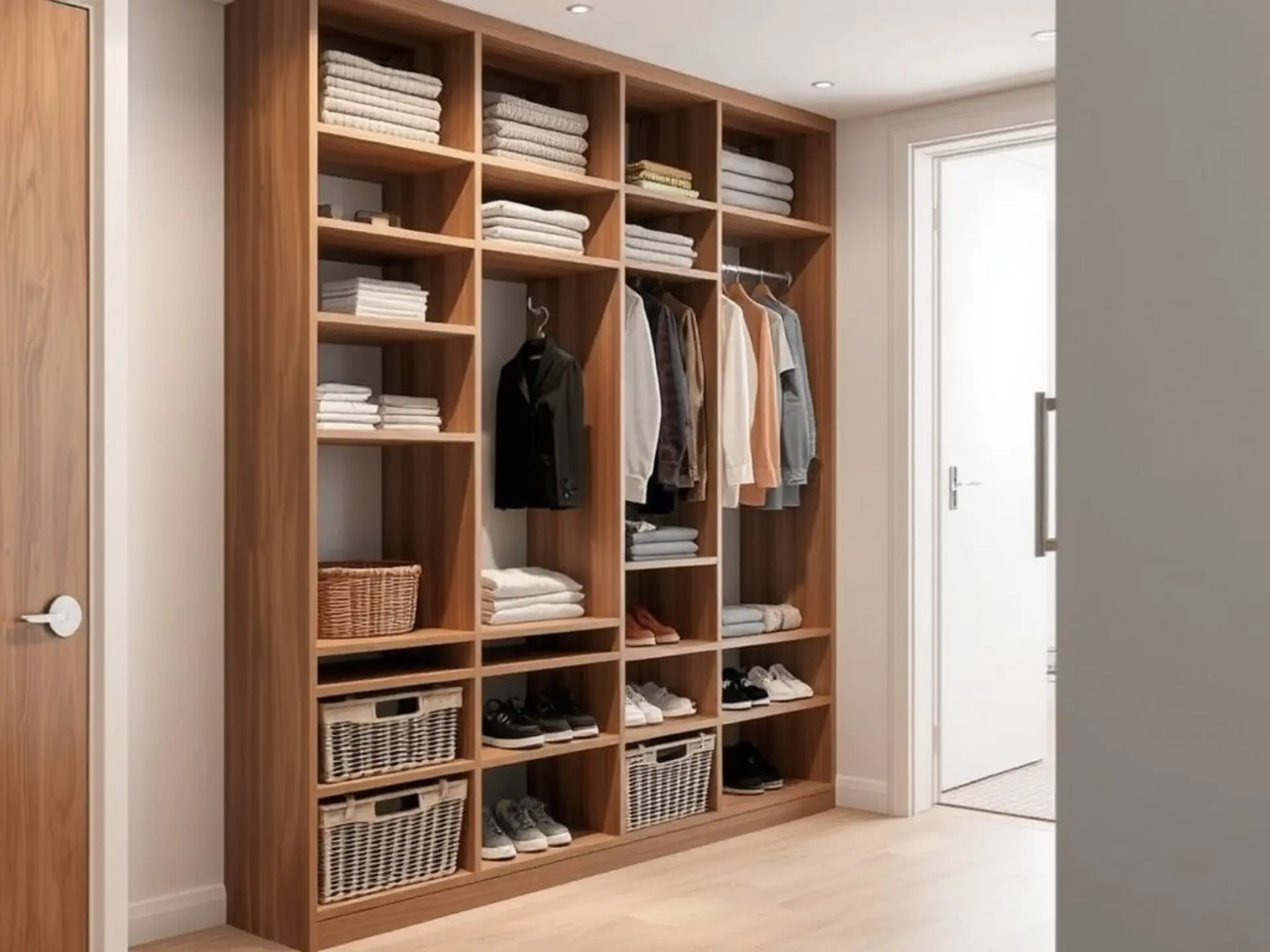 • Деревянные полки и вешалки: Деревянные полки и вешалки выглядят элегантно и долговечны.