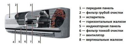 Если бы пользователь увидел кондиционер, который повышает комфортность его проживания, в разрезе, то нашел бы там достаточно много конструкционных элементов и узлов. Часть из них служит для управления агрегатом, помогает штатной электронике и пользователю контролировать ситуацию.