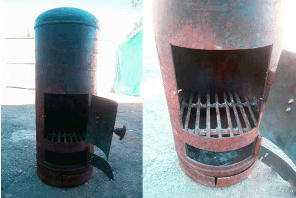 Конструкция буржуйки довольно проста, она состоит из металлической ёмкости с дверцей и дымохода. Сделать буржуйку можно из любой металлической ёмкости — бочки, широкой трубы, газового баллона, металлического короба.