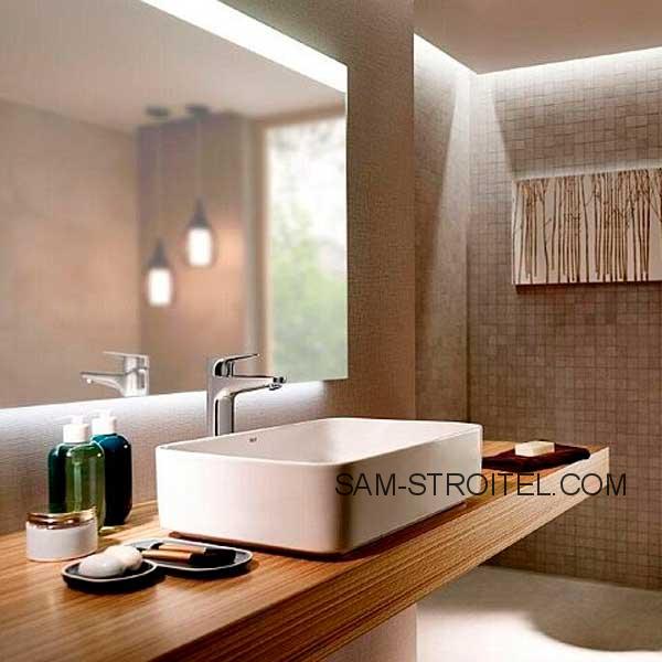 • Встраиваемые (врезные) — устанавливаются в вырез столешницы. Такой вариант часто выбирают для создания цельного дизайна ванной комнаты.