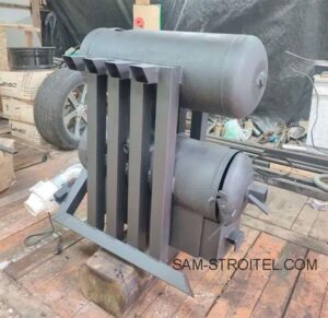 Хочу показать самодельную печь из баллонов, по уже классической схеме, но с отличительными доработками, которые повышают производительность и улучшают качество горения. . Печь из баллонов Печь состоит из двух баллонов по 50 литров каждый: нижний — топка, верхний — теплообменник, дополнительно вварены теплообменники из квадратной трубы. В нижнюю трубу подключён вентилятор для принудительной подачи воздуха …