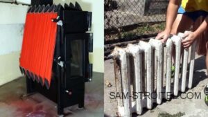 Печь буржуйка самодельная, с теплообменником из радиатора отопления: подробные фото пошагового изготовления печки. . Интересную конструкцию самодельной печки буржуйки изготовил один из умельцев, предлагаю подробно рассмотреть устройство этой печи. Особенность такой самодельной печки в том, что благодаря ребрам радиатора, она имеет дополнительные воздушные теплообменники и быстрее нагревает воздух в помещении. Материалы для изготовления печки: чугунный