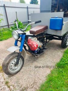 Грузовой трицикл сделанный своими руками, показываю конструкцию для читателей сайта Сам Себе Строитель. Самодельный грузовой трицикл Возникла идея сделать трицикл по типу грузового мотороллера Муравей, что из этого получилось смотрим на фото. Силовой агрегат взят от мотоблока, его мощность 15 л.с, более чем достаточно для мини грузовичка. Коробка передач позаимствована от мотоцикла МТ Днепр, важно …
