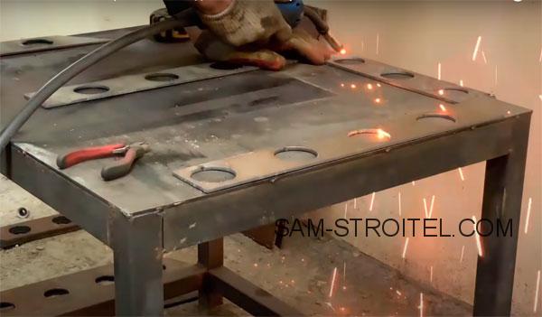 Сначала делаем прихватки, а после окончательной примерки обвариваем.