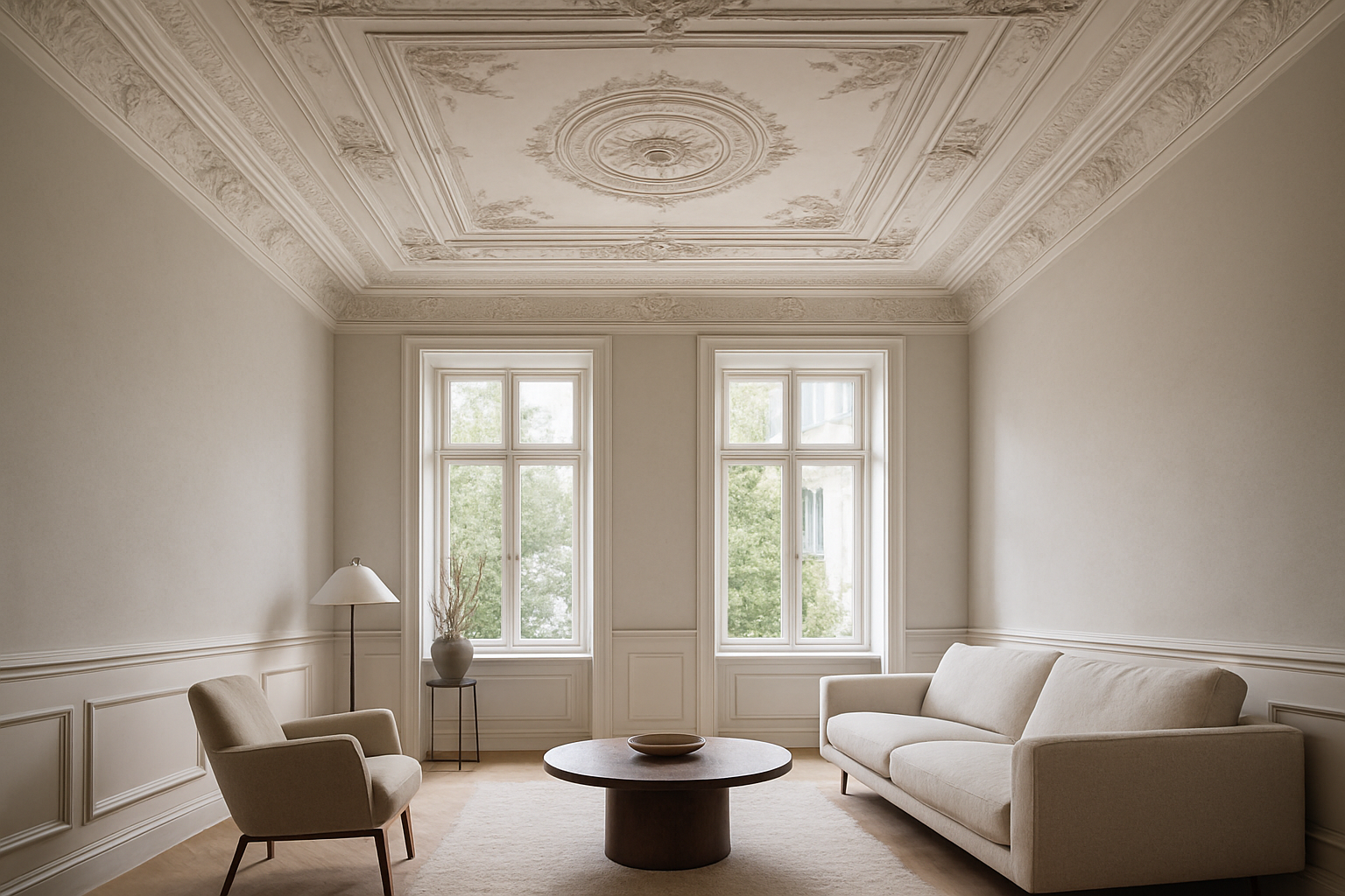 Итак, о чем вообще речь? Потолочная лепнина — это общепринятое название элементов из гипса или полиуретана (как правило), прикрепленных к потолку. Звучит формально, но суть проста: эти детали добавляют объем и характер вашему интерьеру. Причем не стоит думать, что подобные украшения — удел только особняков. Сейчас можно видеть лепнину в городских квартирах любого метража, и она органично дополняет такие стили, как сканди, минимализм и даже лофт. Да, вы не ослышались — лепнина в индустриальном помещении тоже может работать, если грамотно подобрать форму: скажем, не заводить тяжелые узоры с розочками, а предпочесть четкие геометрические линии или невысокий плинтус с ровным профилем. Иногда именно такая неожиданная комбинация и придает особое очарование пространству.