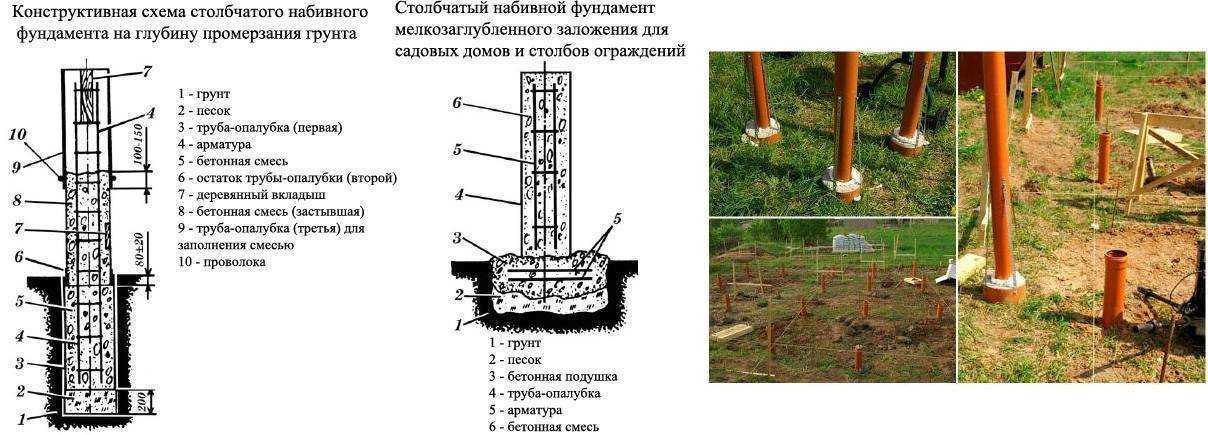 Столбчатый фундамент – это один из самых простых и доступных способов обустройства фундамента для постройки небольших строений, таких как навесы, беседки, заборы и другие садовые постройки. Он может быть выполнен из различных материалов, включая пластиковые трубы.