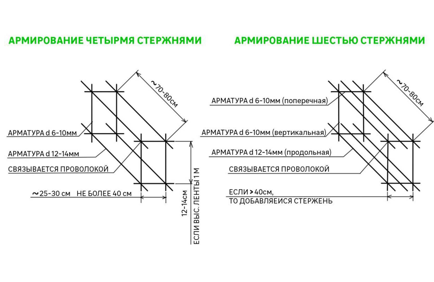 Расстояние между стержнями в ленточном фундаменте определяется исходя из нескольких факторов. Основными из них являются: