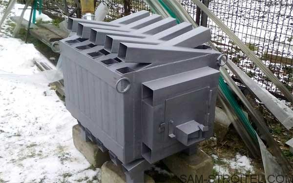 В этой конструкции, профильные трубы также выполняют роль теплообменников, конструкция напоминает всем известную печь «Булерьян».