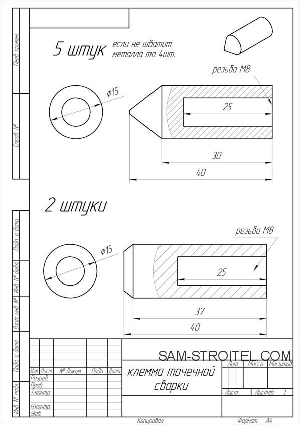 Позже куплен на блошином рынке, медный прут сечением 16мм. из которого токарь выточил по моей просьбе будущие электроды.