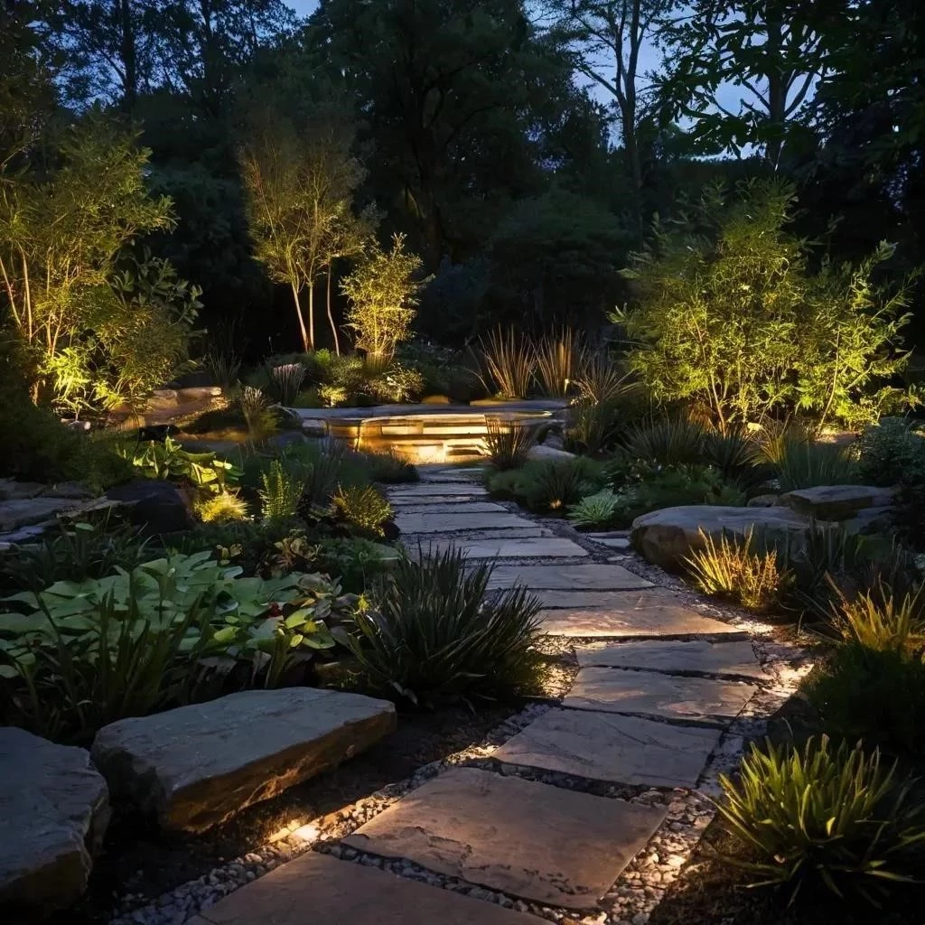 Важно: Для создания световых акцентов используйте прожекторы и направленные светильники. Подсвечивайте интересные элементы ландшафтного дизайна: растения‚ водоемы‚ архитектурные детали.