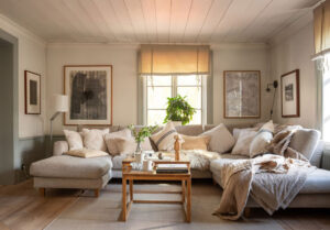 Эта шведская дача подкупает своей приятной и интересной цветовой гаммой интерьеров. Снаружи это чудесный белый домик с оливковыми окнами, а вот внутри каждая комната открывается нам в интересных оттенках. Так, например, стены в гостиной имеют прекрасный желтый оттенок,